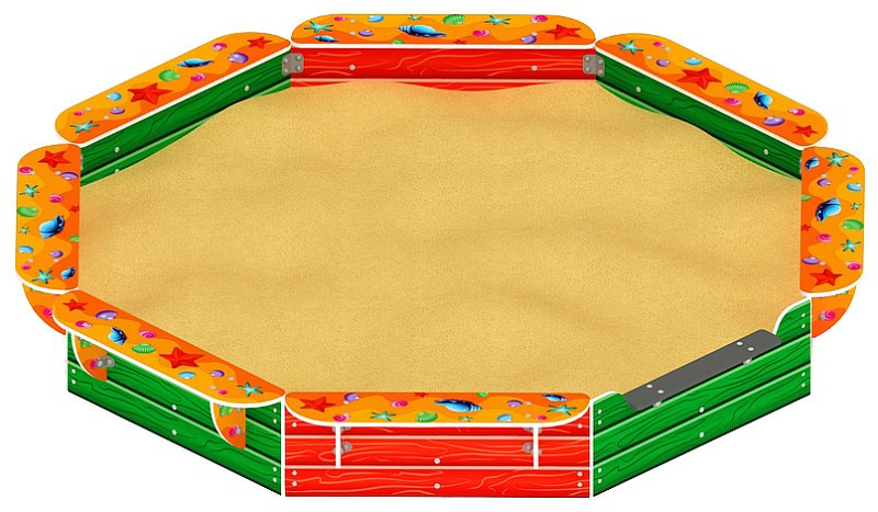 Песочница восьмигранная (Ракушки) - ИО 5.01.04-40 Габариты (ШхДхВ): 3480x3480x450 Зона безопасности, мм: 4500х4500