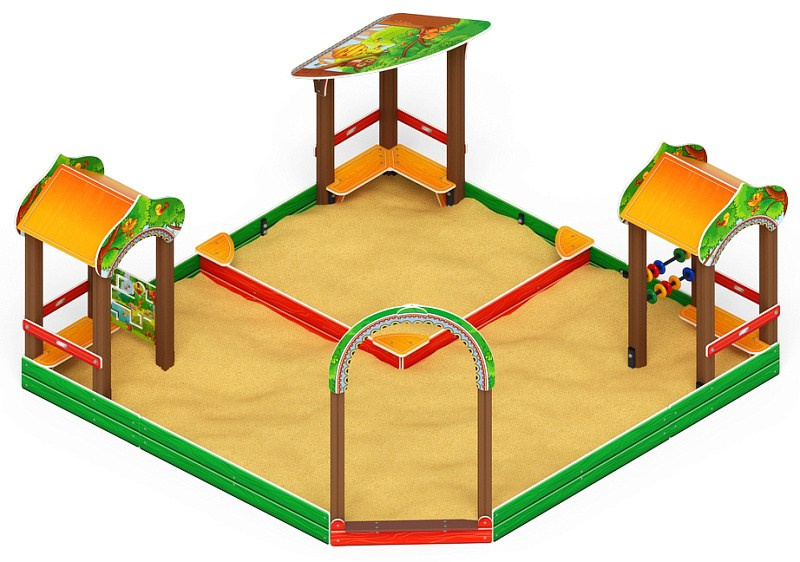 Песочный дворик Полянка - ИО 6.16.02-01 Габариты (ШхДхВ): 4200x4110x2080 Зона безопасности, мм: 5200х5110