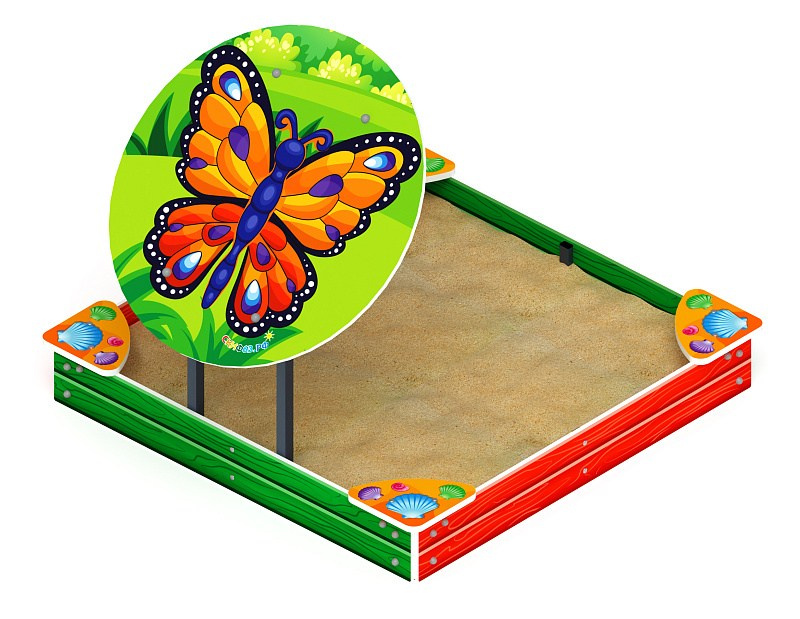 Песочница средняя с навесом Бабочка (Ракушки) - ИО 5.01.09-02 Габариты (ШхДхВ): 1920x1700x1500 Зона безопасности, мм: 2920х2700