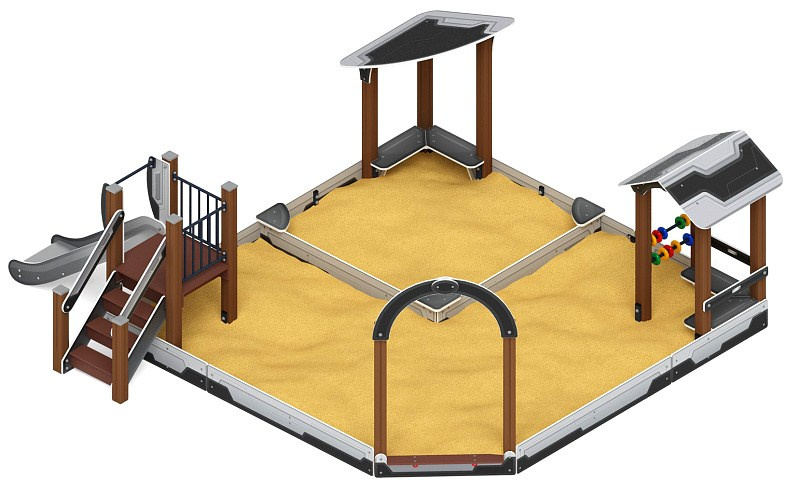 Песочный дворик с горкой Космопорт (Серый) - ИО 6.14.01-01 H=750 Габариты (ШхДхВ): 4510x5180x3000 Зона безопасности, мм: 6510х7680