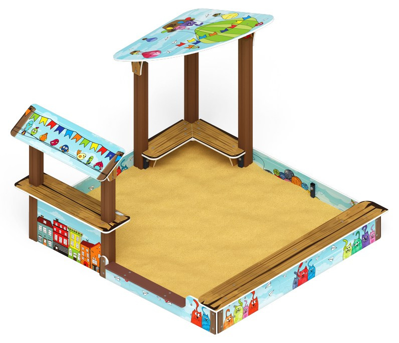 Песочница средняя с навесом Космопорт - ИО 5.14.01-02 Габариты (ШхДхВ): 1920x1700x1500 Зона безопасности, мм: 2920х2700