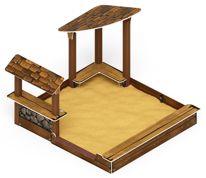 Песочный дворик с навесом Домик (Коричневый) - ИО 6.01.02-01 Габариты (ШхДхВ): 2000x2050x2000 Зона безопасности, мм: 3000х3050
