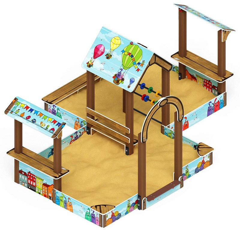 Песочный дворик Теремок (Техно) - ИО 6.01.04-04 Габариты (ШхДхВ): 2880x2995x2000 Зона безопасности, мм: 4880х4995
