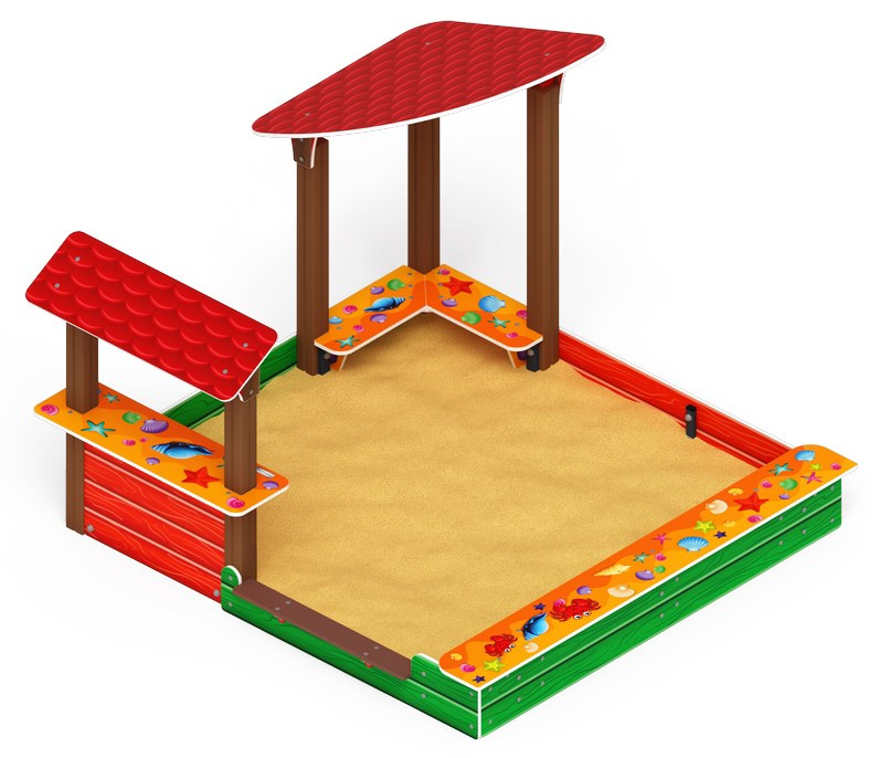 Песочный дворик двойной большой с навесом Домик (Ракушки) - ИО 6.01.03-01 Габариты (ШхДхВ): 3340x4530x2000 Зона безопасности, мм: 4340х5530