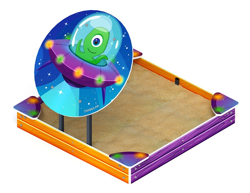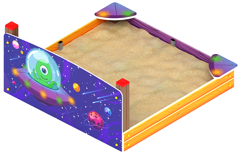 Песочница средняя с ограждением Космопорт - ИО 5.14.01-01 Габариты (ШхДхВ): 1700x1670x800 Зона безопасности, мм: 2700х2670