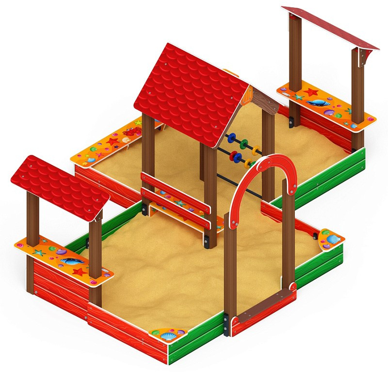 Песочный дворик (Ракушки) - ИО 6.01.01-01 Габариты (ШхДхВ): 2600x2540x1640 Зона безопасности, мм: 3600х3540