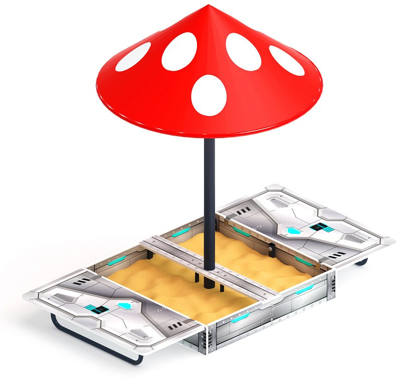 Песочница с крышкой средняя и навесом Грибок (Техно) - ИО 5.01.10-10 Габариты (ШхДхВ): в закрытом виде 1200х1240х2100 в открытом виде 2380х1200х2100 Зона безопасности, мм: 3380х2200