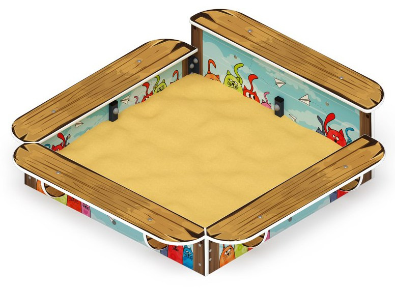 Песочница средняя (Коты) - ИО 5.01.15-03 Габариты (ШхДхВ): 1590x1540x420 Зона безопасности, мм: 2590х2540