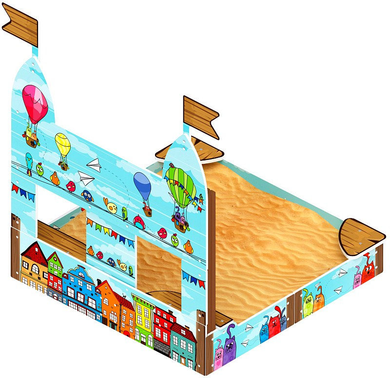 Песочница Королевство (Коты) ИО 5.15.01-11 Габариты (ШхДхВ): 1920x1790x1630 Зона безопасности, мм: 2920х2790