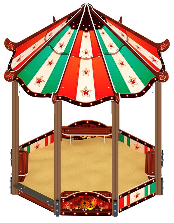 Песочница восьмигранная Карнавал (Шапито) - ИО 5.01.04-20 Габариты (ШхДхВ): 2320x2320x500 Зона безопасности, мм: 4320х4320