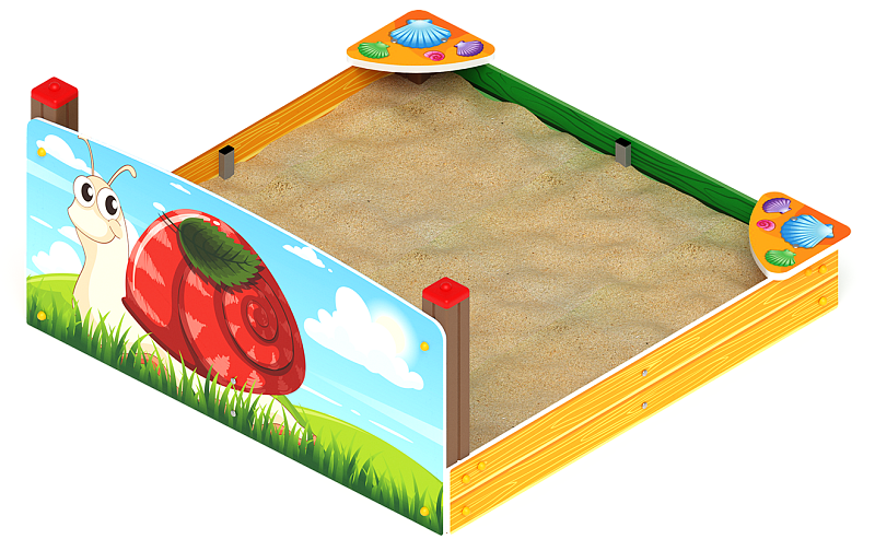 Песочница средняя с ограждением Улитка (Ракушки) - ИО 5.01.02-02 Габариты (ШхДхВ): 1700x1670x800 Зона безопасности, мм: 2700х2670