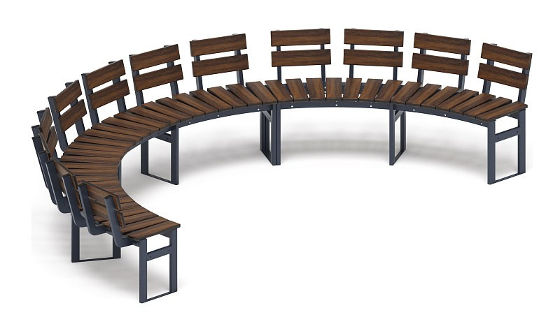 Модульная скамья радиальная (темный дуб) МФ 42.01.23 Габариты (ШхДхВ): 3280х800х740 мм