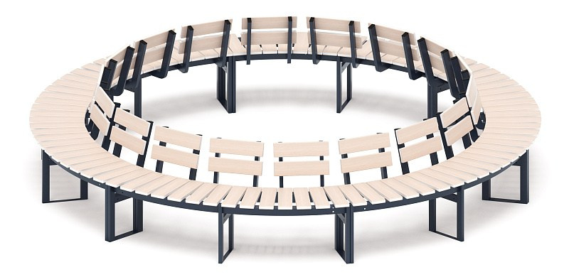Модульная скамья радиальная (беленый дуб) МФ 42.01.26-01 Габариты (ШхДхВ): 3500х3500х450 мм