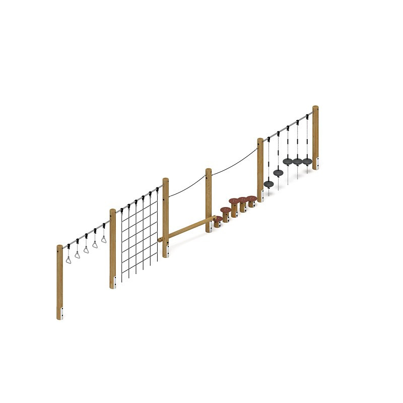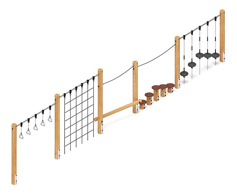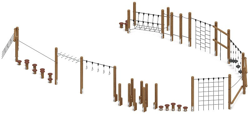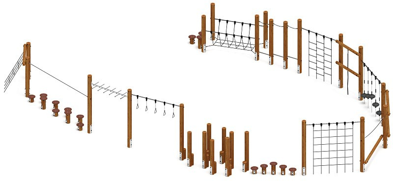 Спортивная серия (лиственница орех) СК 2.08.08-Л.И1.02 Габариты (ШхДхВ): 12000х440х2550 Зона безопасности, мм: 15000х3440 Возрастные ограничения от 5 до 12 лет