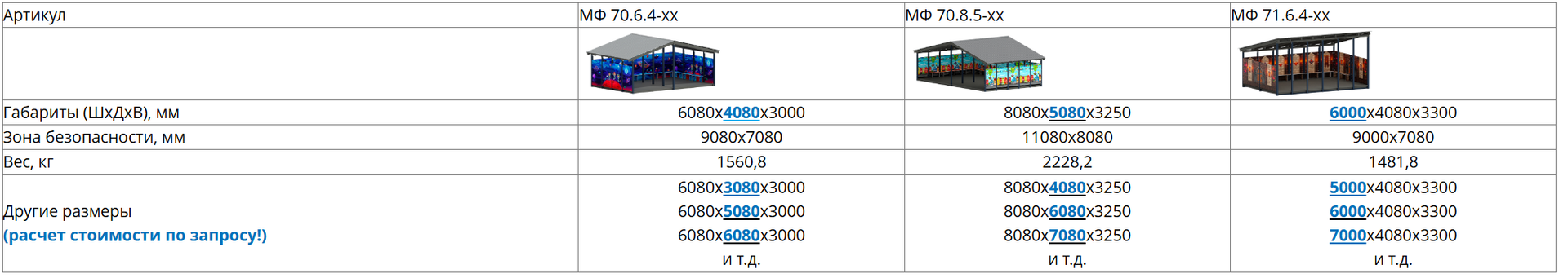 Представленные навесы доступны не только в стандартных размерах, указанных в карточках товара, но и с нестандартными размерами, которые нужны именно для Вашего проекта. Все просто: выбираете вид навеса, подбираете нужную ширину или длину (шаг=1м), пишете менеджеру и получаете расчет!