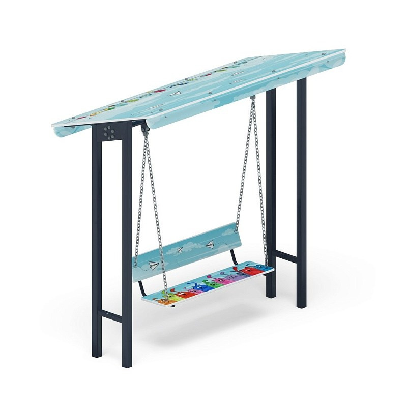 Качели-диван с навесом (Коты) - МФ 43.01.02-01 Габариты (ШхДхВ): 2220x1140x2240 мм Зона безопасности, мм: 2220х7600